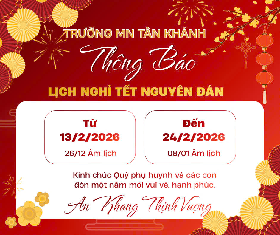 Thông báo lịch nghỉ tết Nguyên đán của trường Mầm non Tân Khánh